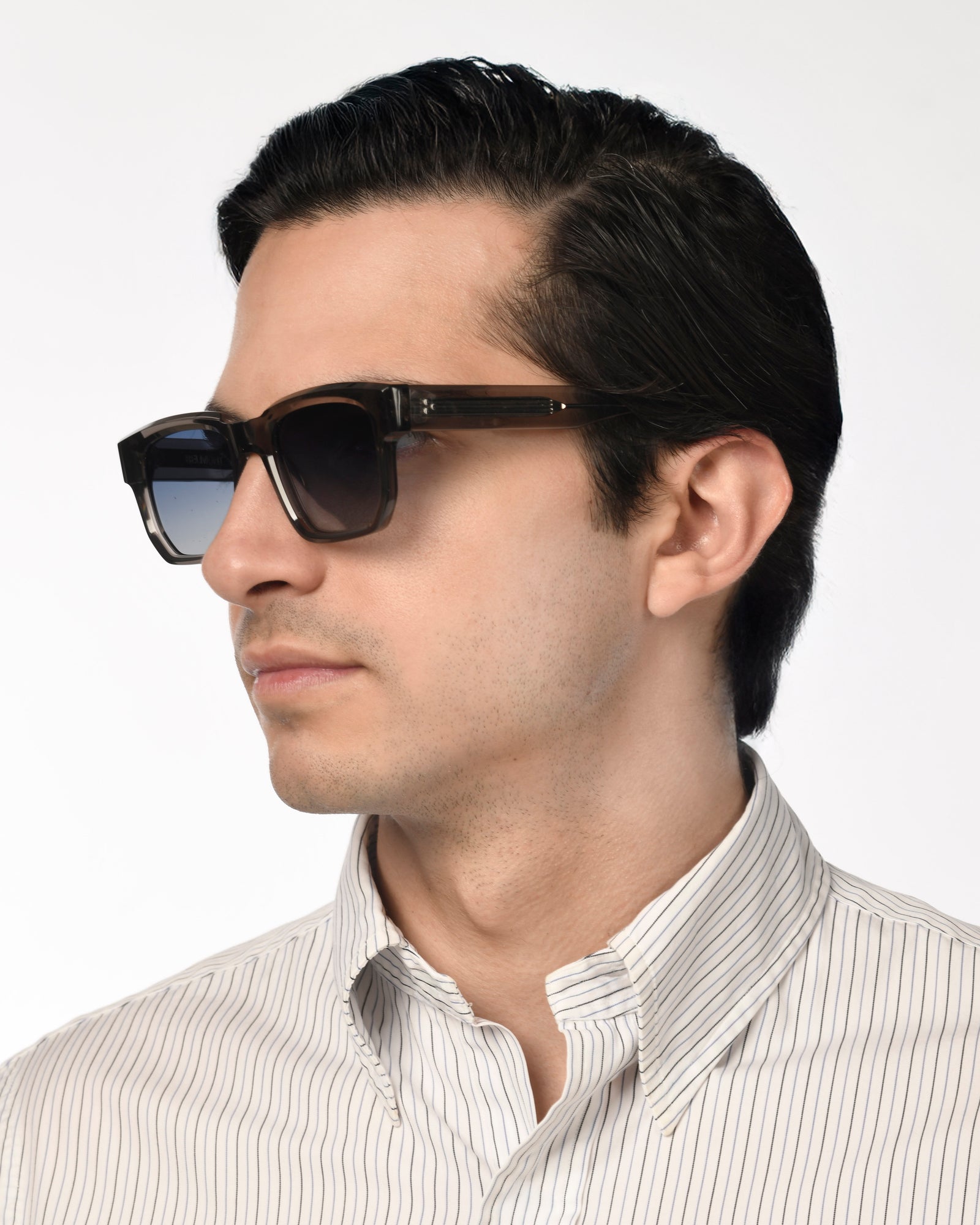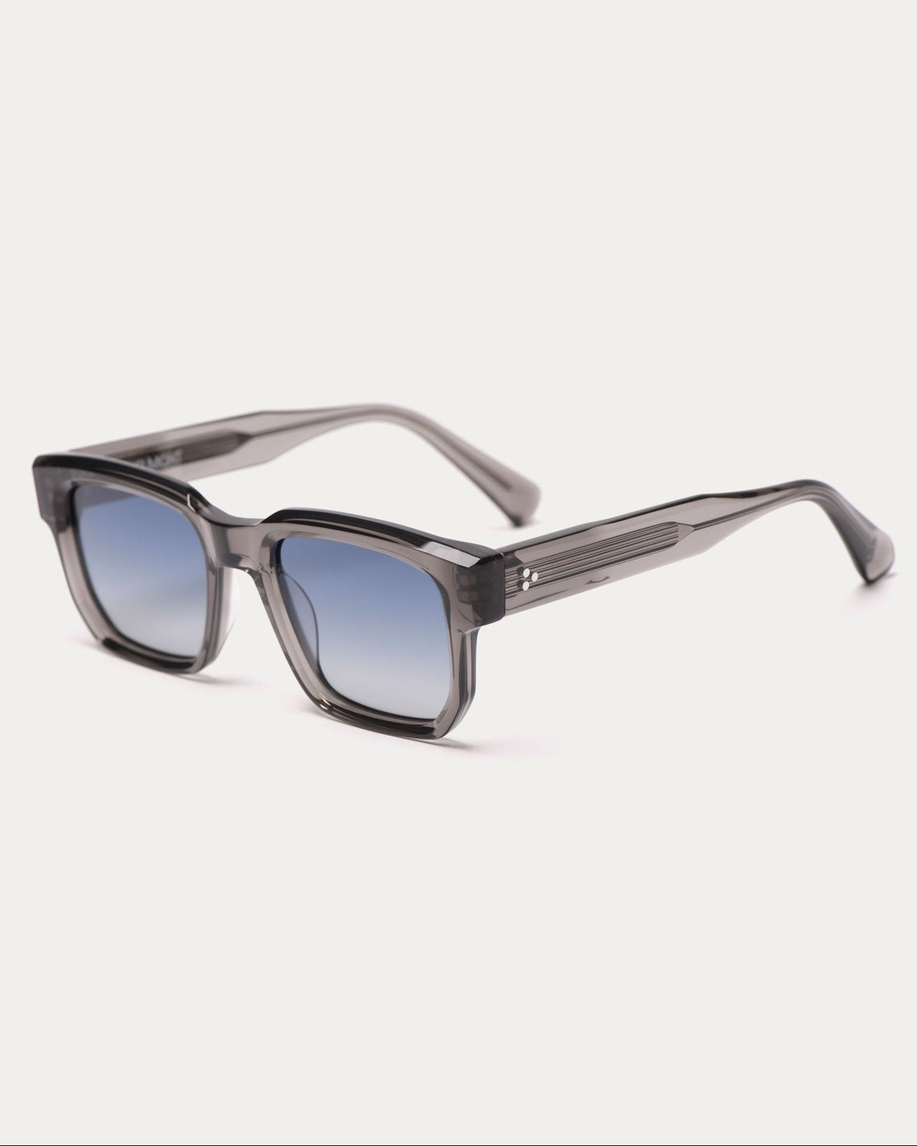 GRANT: diseño cuadrado y sólido, con detalles que se sienten. Acetato italiano, lente de nylon y protección UV400 para ligereza y cobertura total. Varilla interna visible, fina y elegante, y bisagras de acero reforzadas de 7 puntos para una apertura suave, firme y duradera.